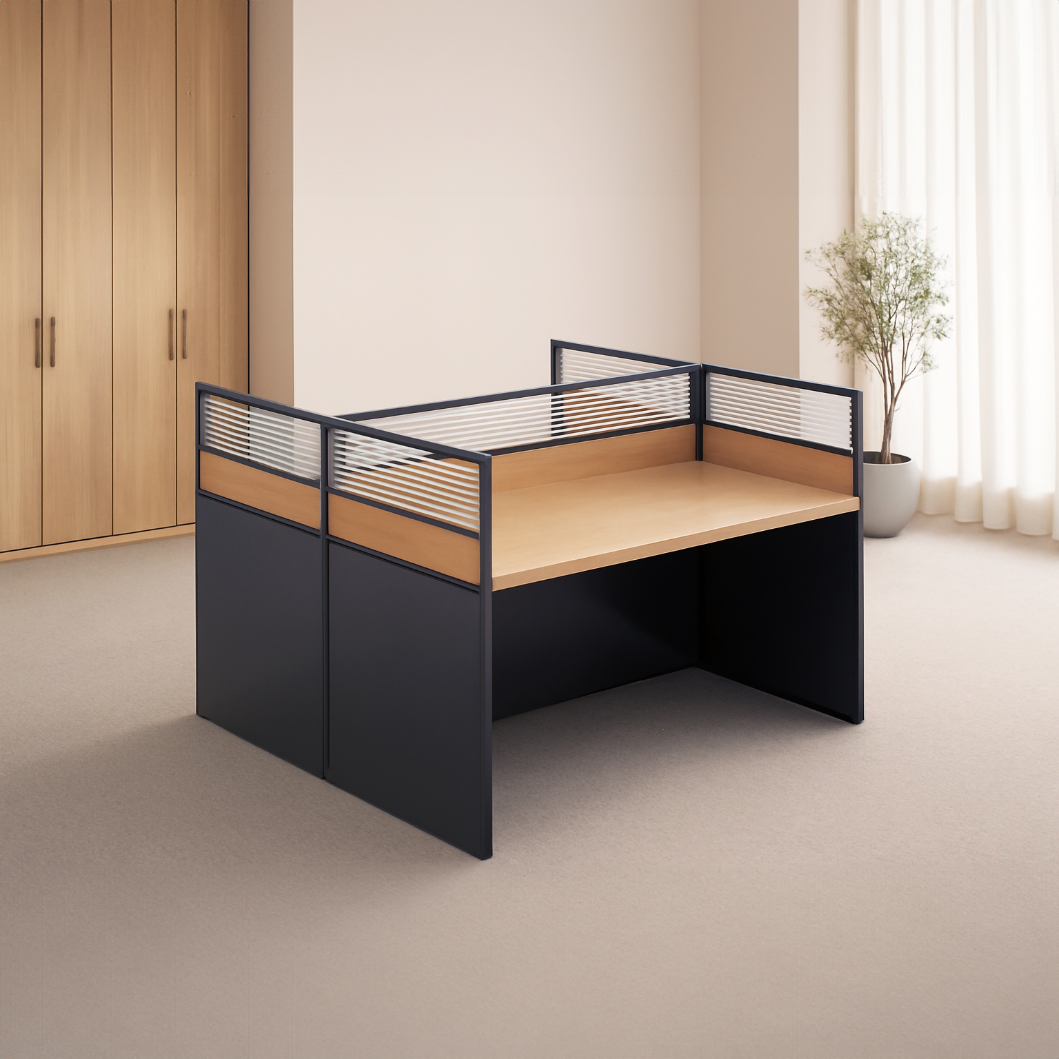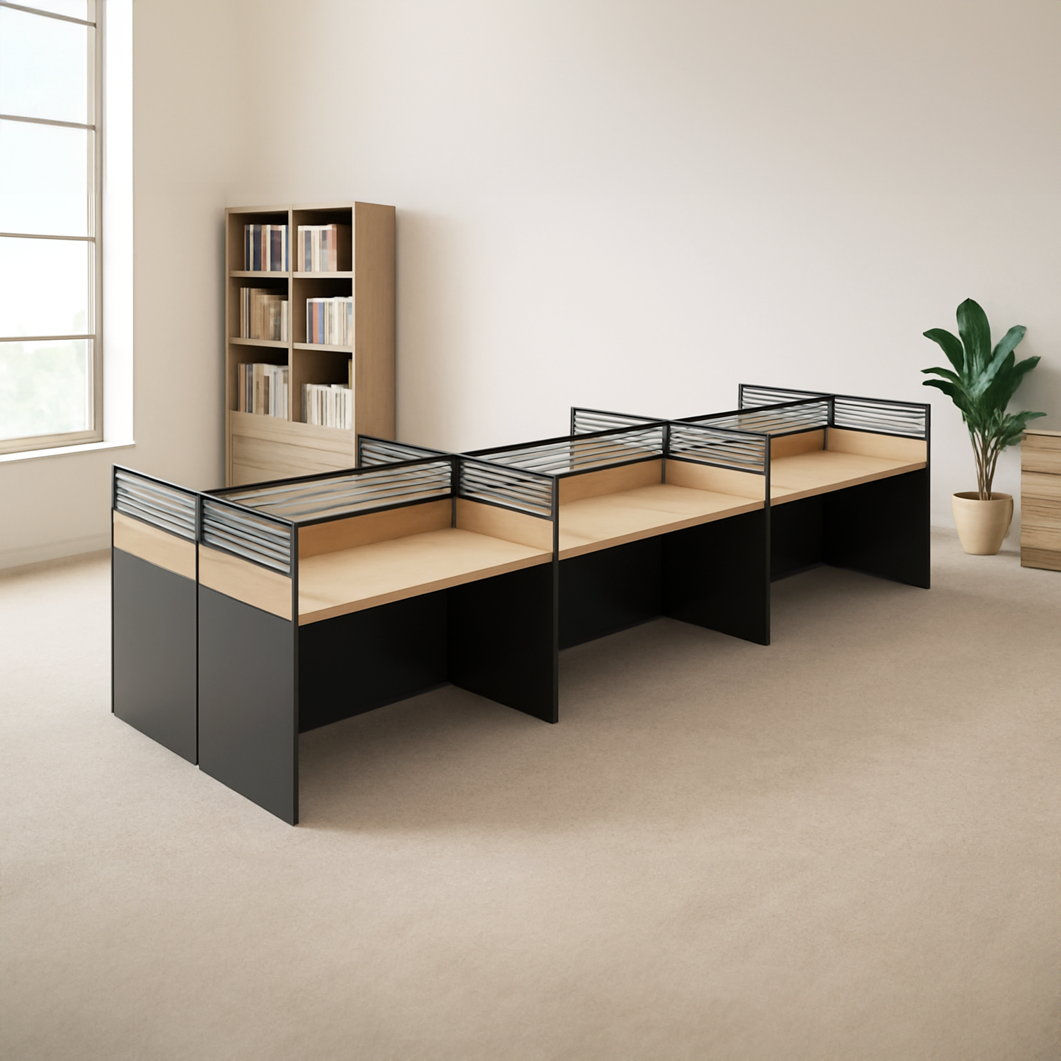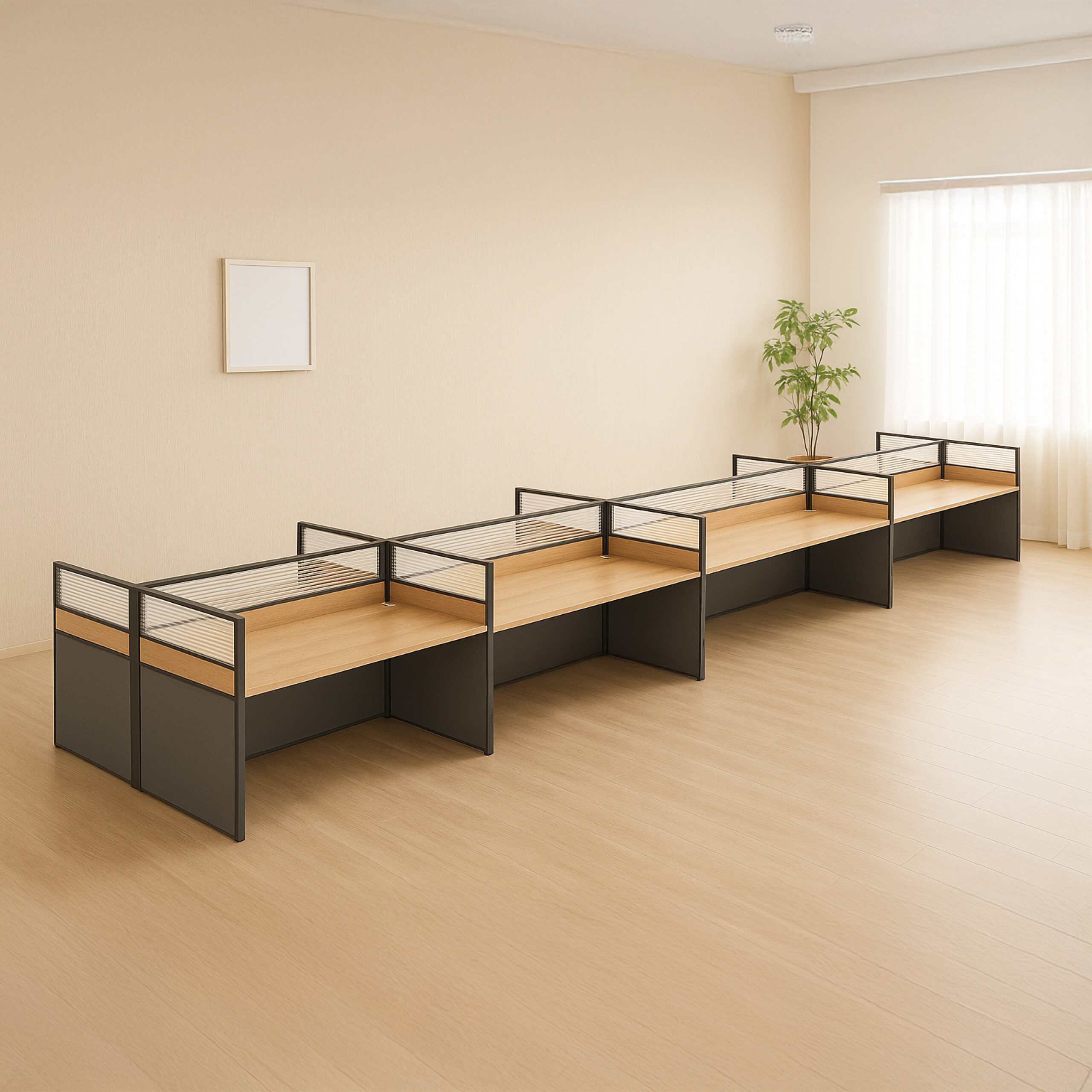 - Fits More Desks in Less Space – tightly aligned pods fit more people without crowding the room.