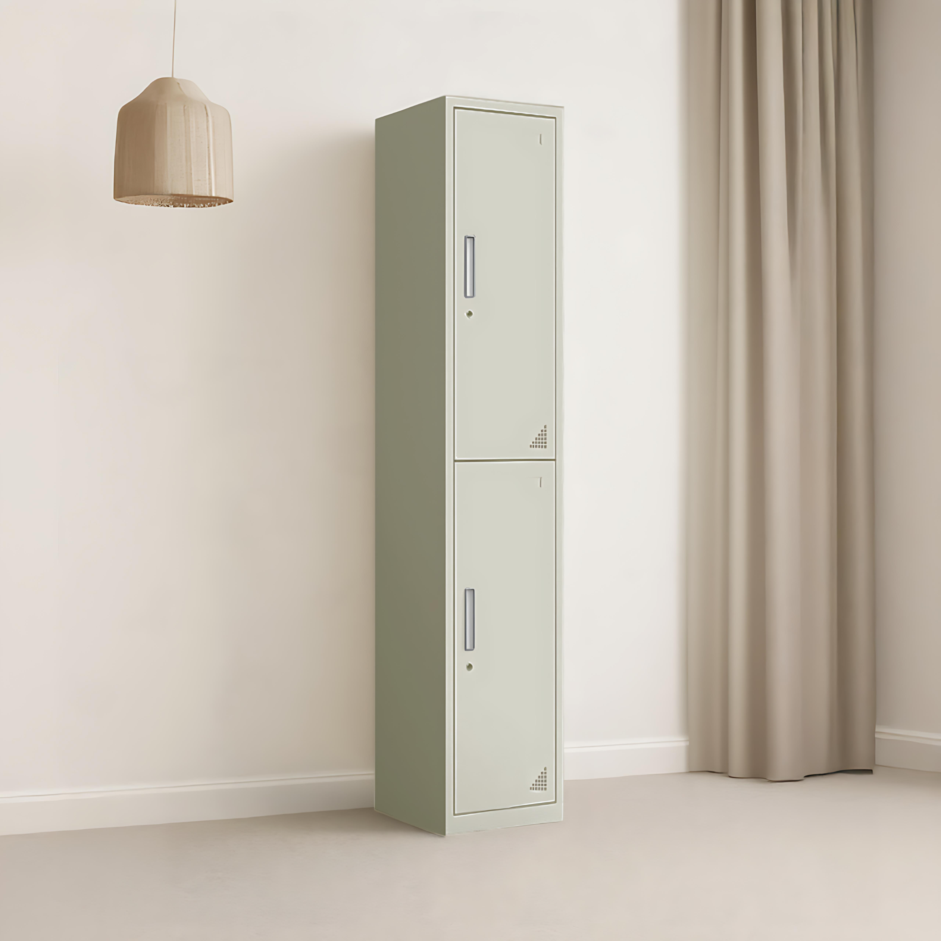 The 2-door locker looks sleek and fits perfectly in our hallway. The doors open and close smoothly, and the ventilation panels are a thoughtful touch.